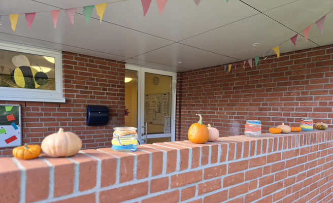 In der Krippe wird es herbstlich und bunt. Die Kinder hatten viel Spaß beim Dekorieren und Basteln. Wir danken Orchideen Fester (Kurt Fester GmbH) für die großzügige Spende der Kürbisse!